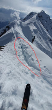 auf der Leeseite überhängenden Wechte. Er entsteht durch Setzungsvorgänge und